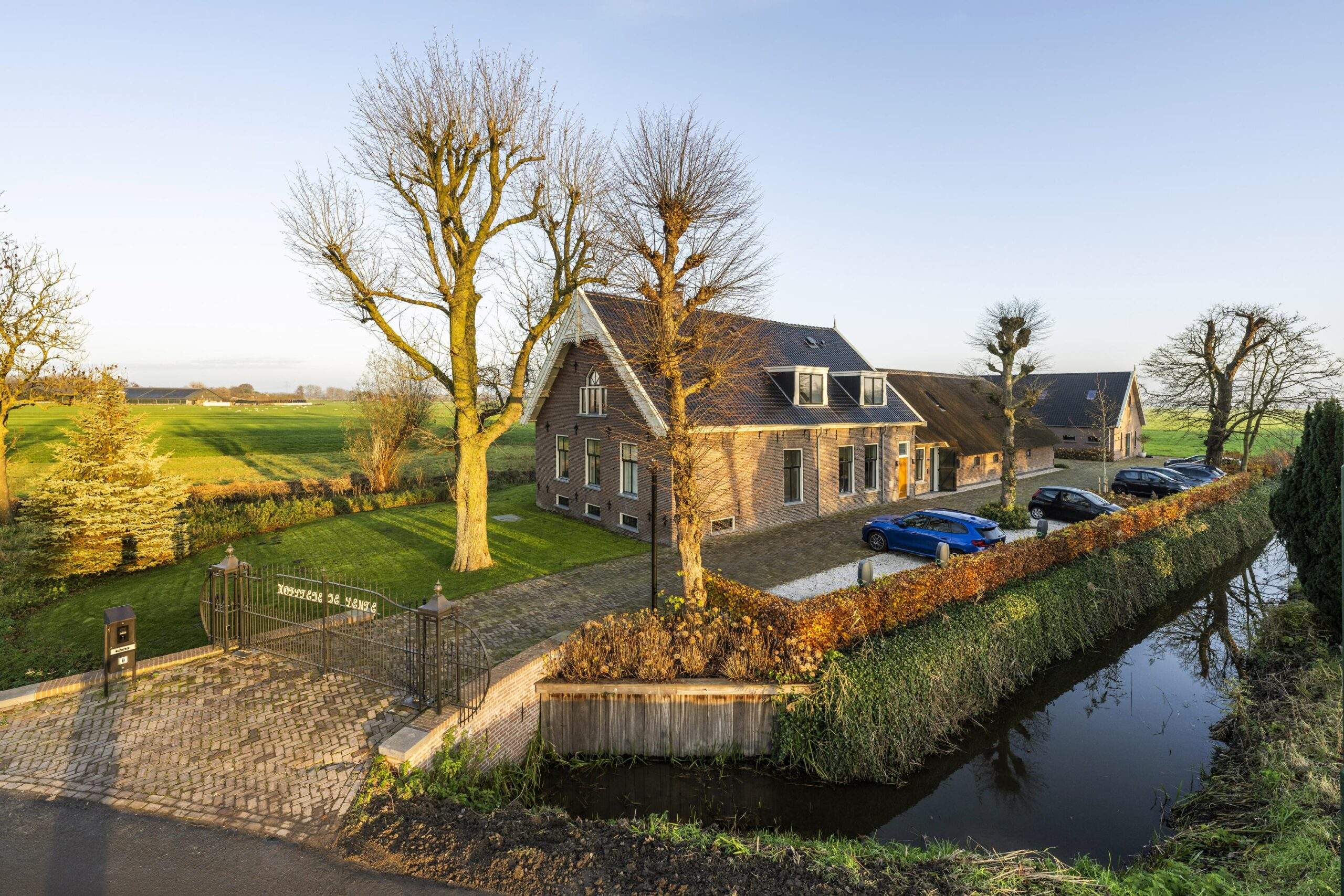 Als je aankomt via de kronkelweg Gein Zuid, zie je het vrijstaande en elegante landhuis al liggen. De originele poort met unieke details geeft toegang tot de hoofdingang van de stijlvolle kantoorboerderij, volledig gerenoveerd en hoogwaardig afgewerkt. De royale entree heet je welkom en leidt je naar het statige voorhuis en het opengewerkte achterhuis. Parkeren kan op de ruime plekken tegenover het landhuis.