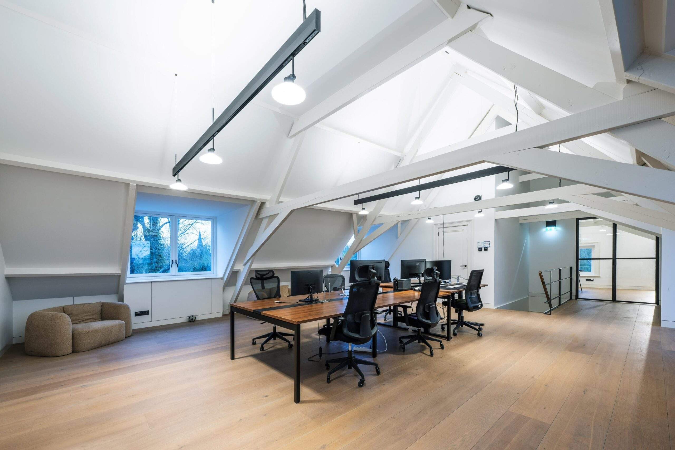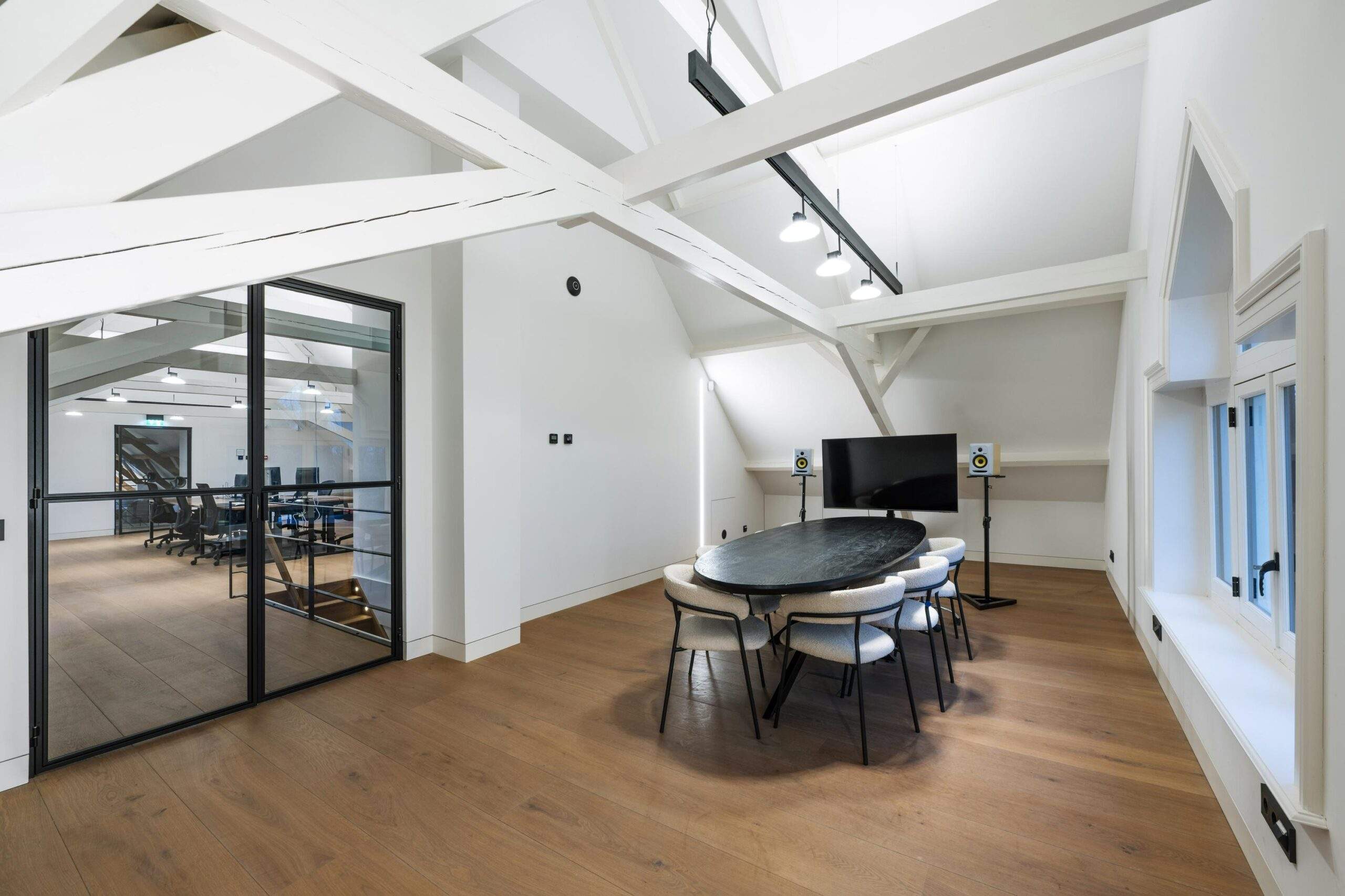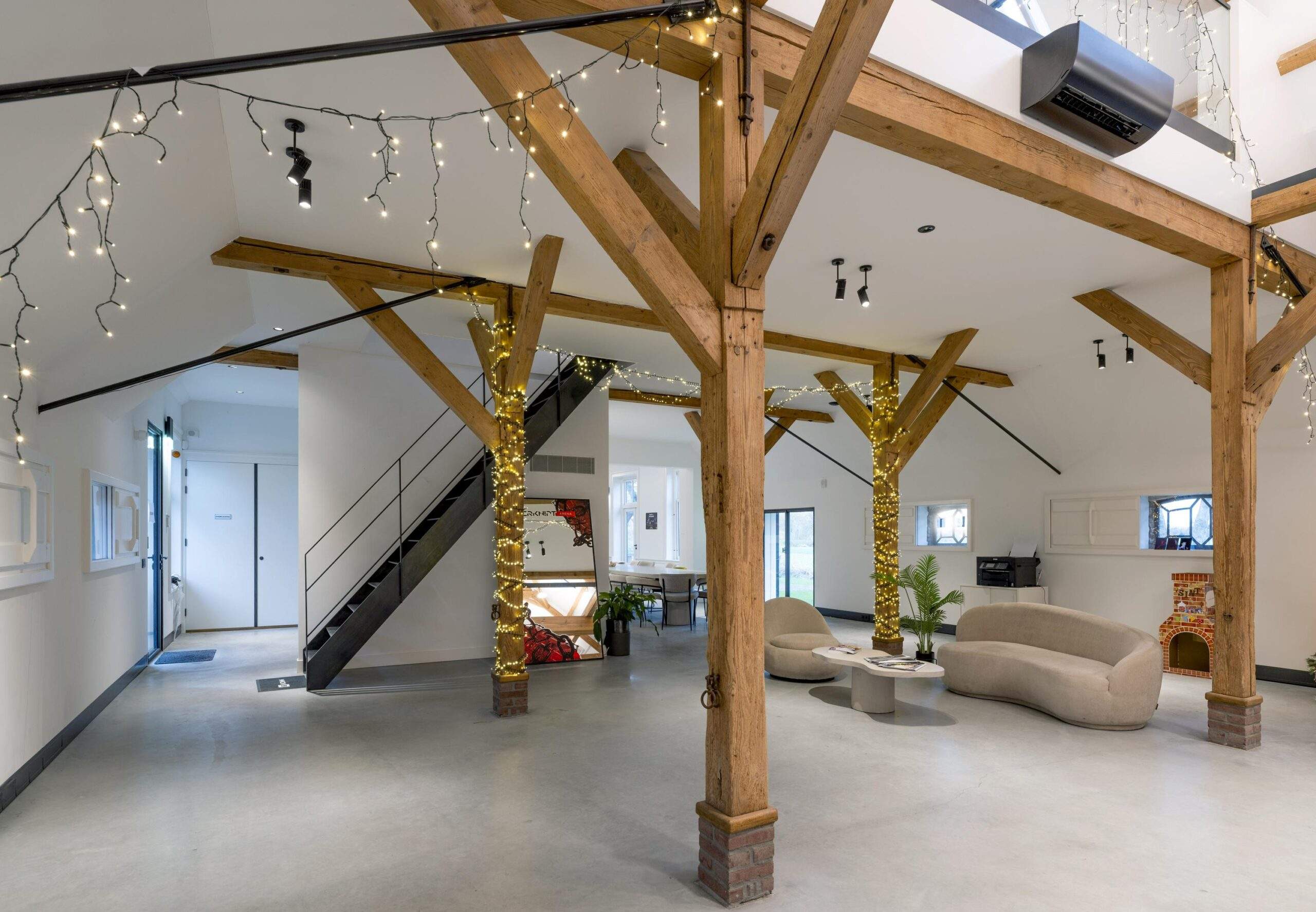 De kantoorboerderij is volledig gerenoveerd onder architectuur. Met respect voor het verleden en veel oog voor details. De houten balken, strakke gietvloeren, houten vloeren, stalen accenten, originele boerderijramen en grote raampartijen creëren een eigen karakter, modern en luxe. Energielabel A+++ maakt het plaatje compleet: de kantoorboerderij is klaar voor de toekomst.