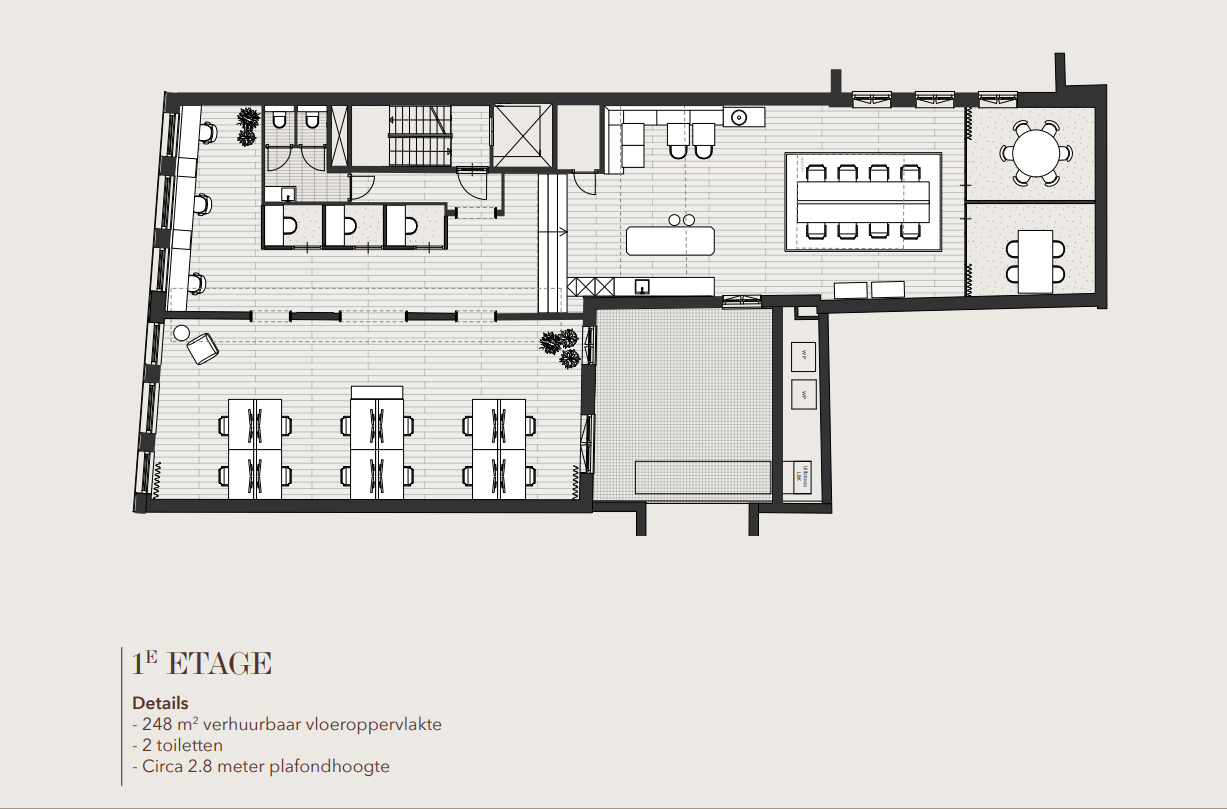 1e verdieping: circa 250 m² v.v.o.