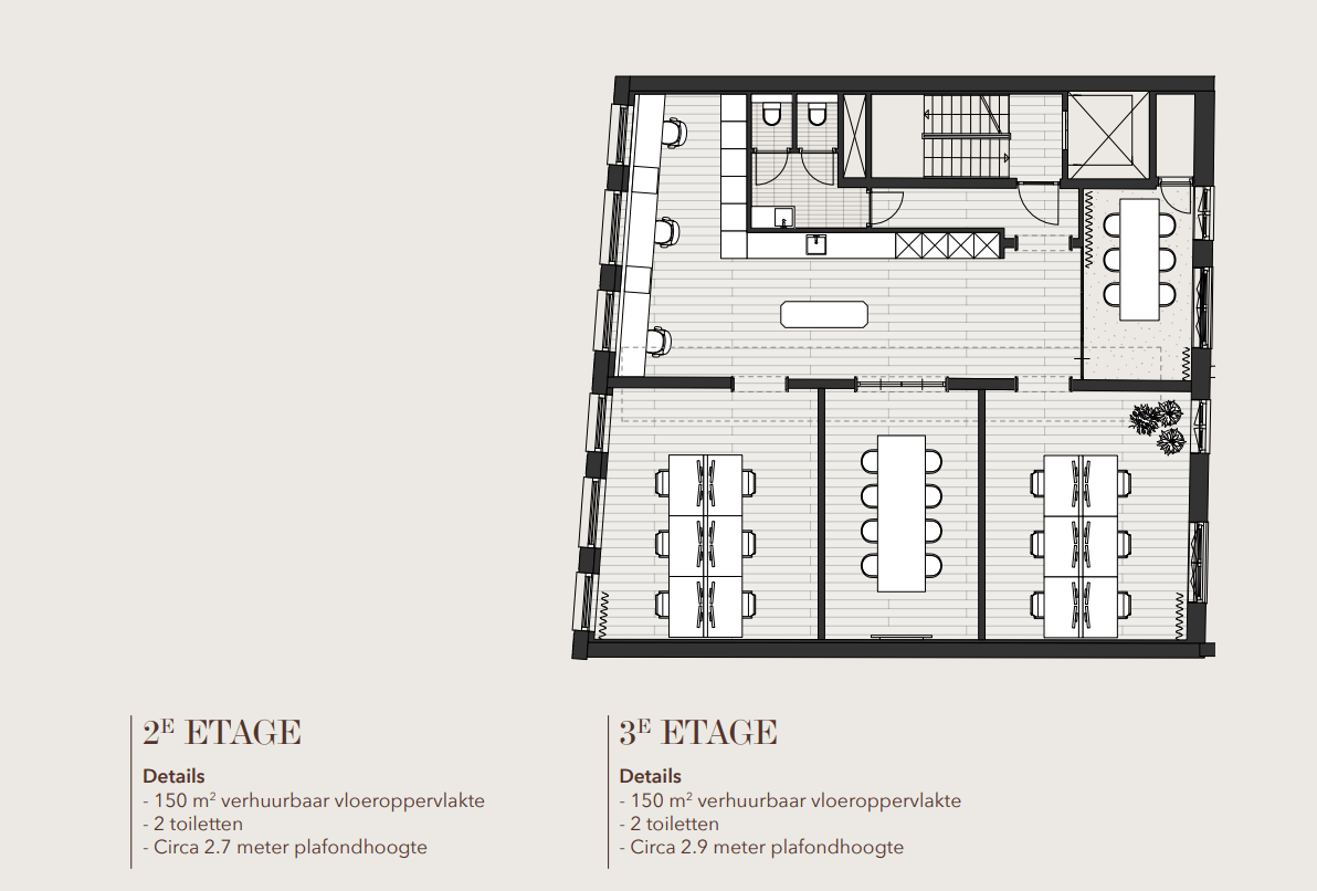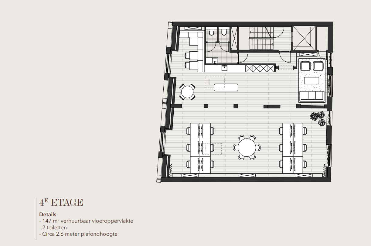 4e verdieping: circa 150 m² v.v.o.
