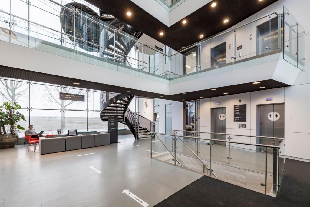 Kantoorvleugel van ca. 910 m² v.v.o. gelegen op een uitstekende locatie op kantorenterrein Beukenhorst Oost. De medegebruiker van het pand is Young Capital, waardoor een dynamische en energieke sfeer in het gebouw heerst. Het gebouw bestaat uit twee bouwdelen, die op elke verdieping door middel van een loopbrug met elkaar zijn verbonden en een atrium dat zich uitstrekt over de gehele hoogte. Het medegebruik van de receptiediensten en restaurant kan met Young Capital worden besproken.