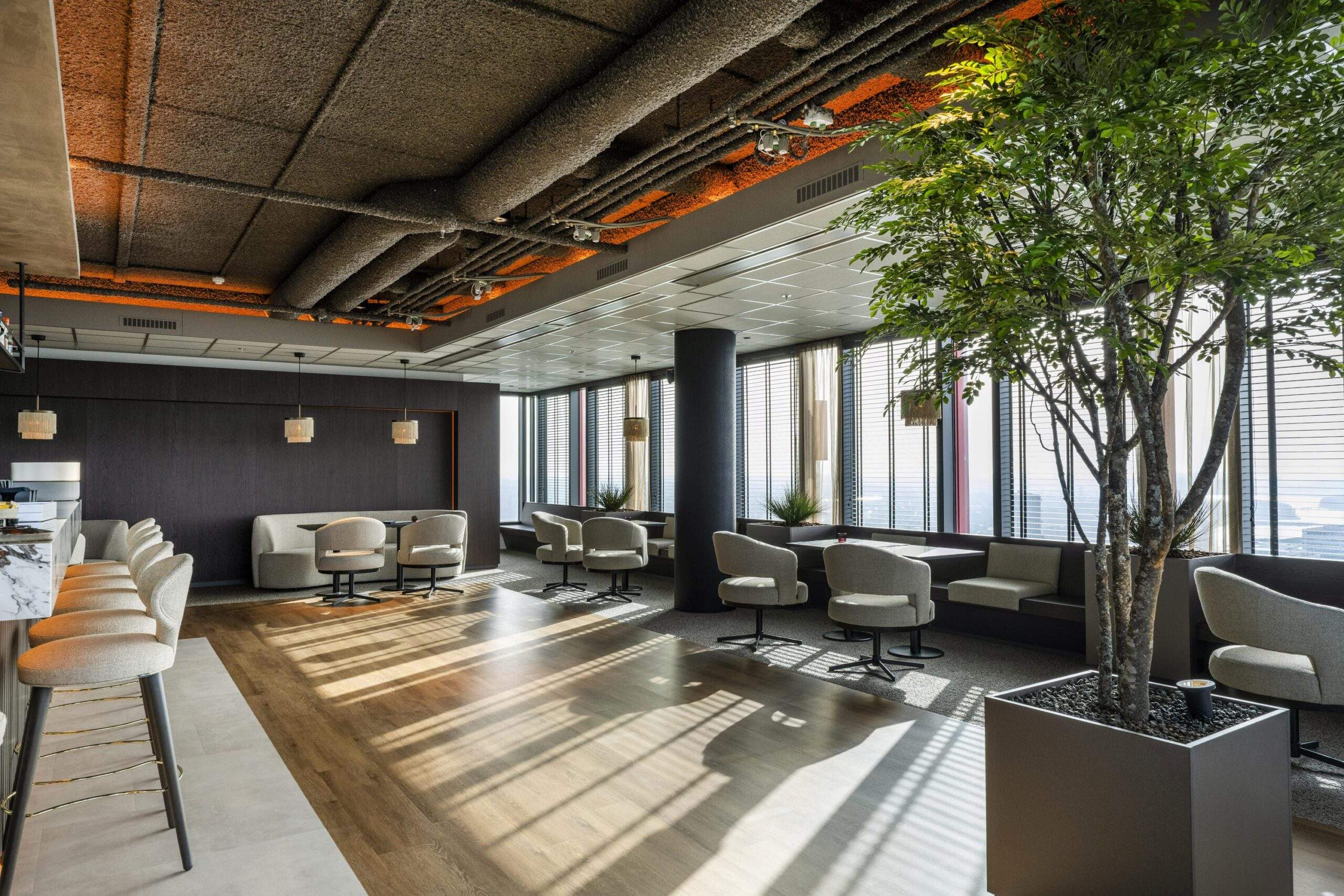 Een gebouw met A++ energielabel, voorzien van slimme technologie en full-service ondersteuning. Van receptie en hospitality tot community events en een skybar met panoramisch uitzicht — alles is aanwezig om jouw werkdag moeiteloos te laten verlopen.