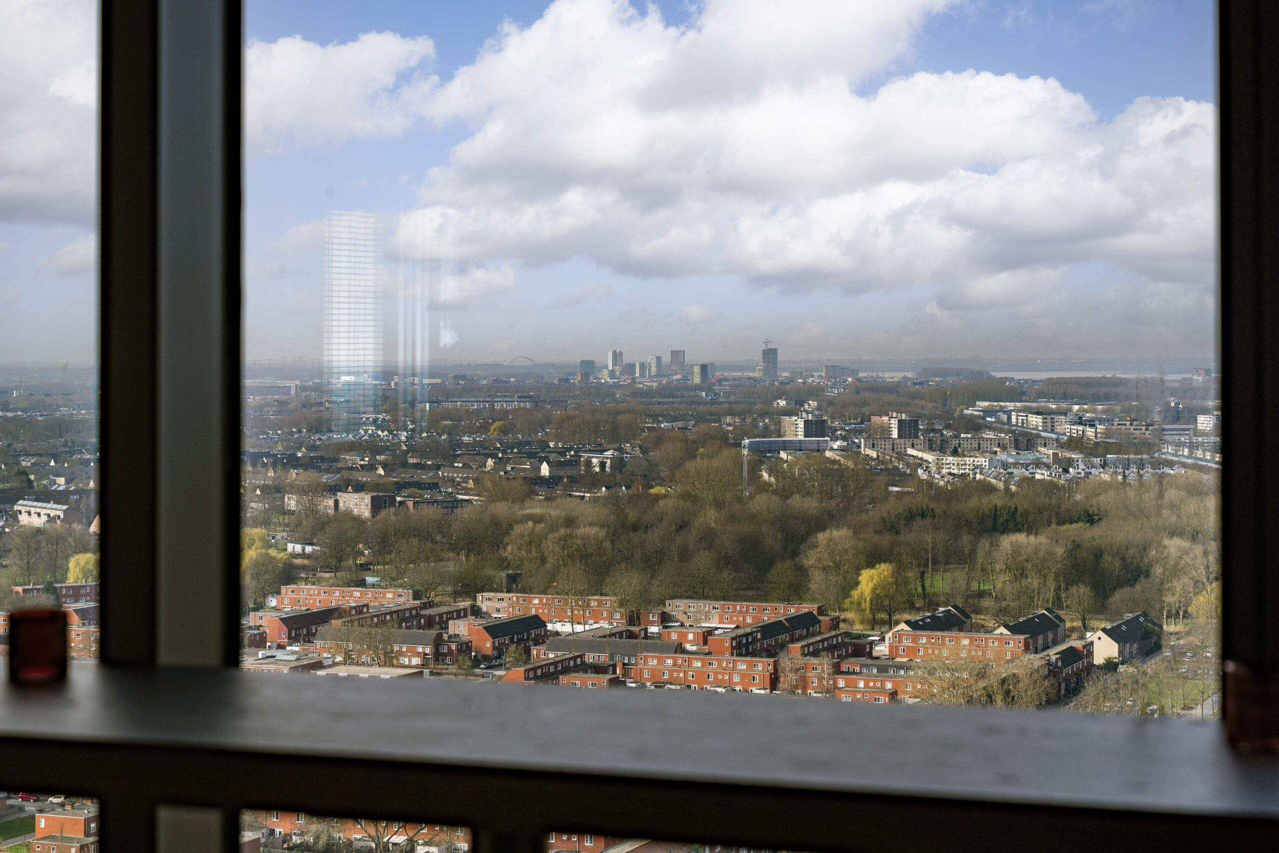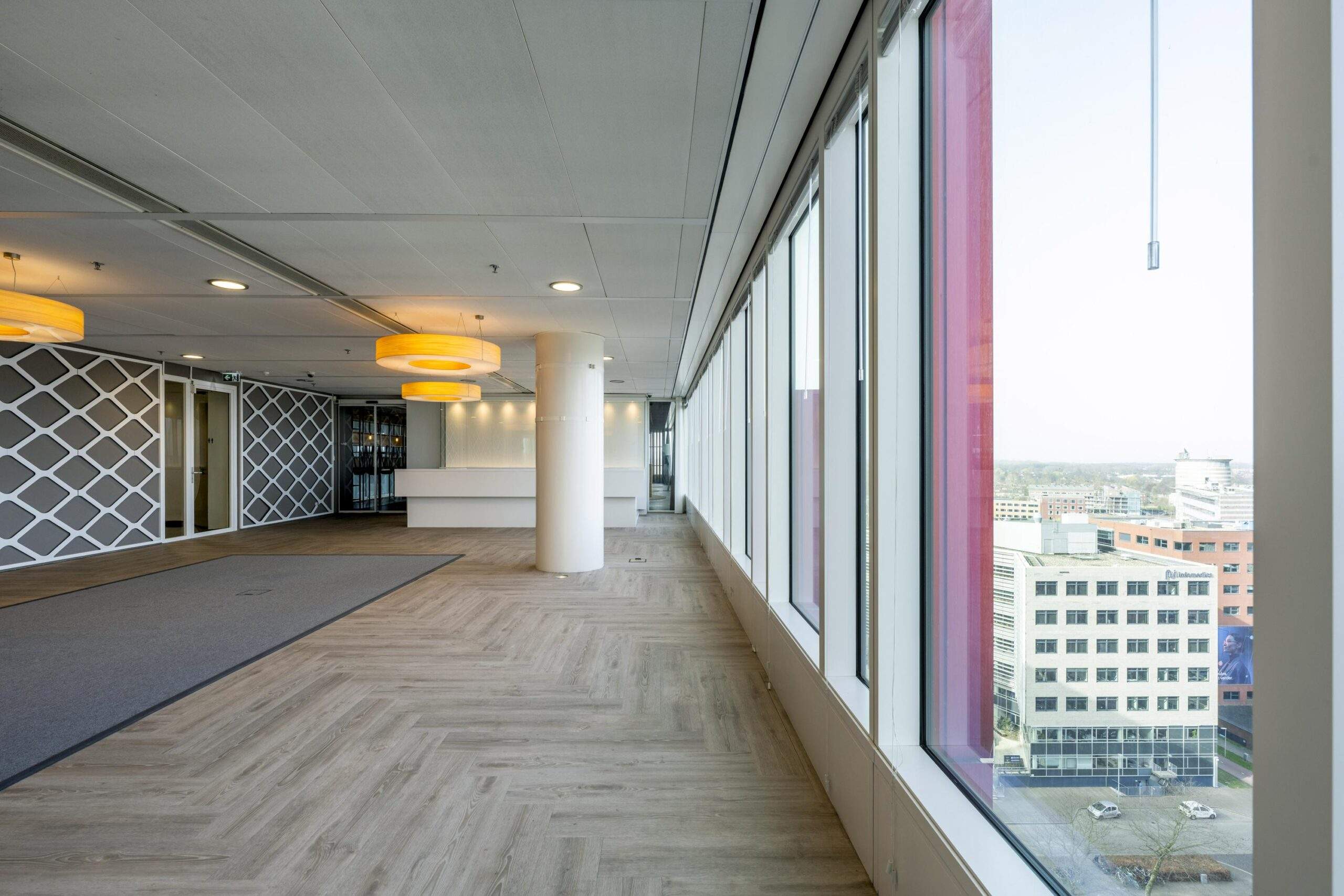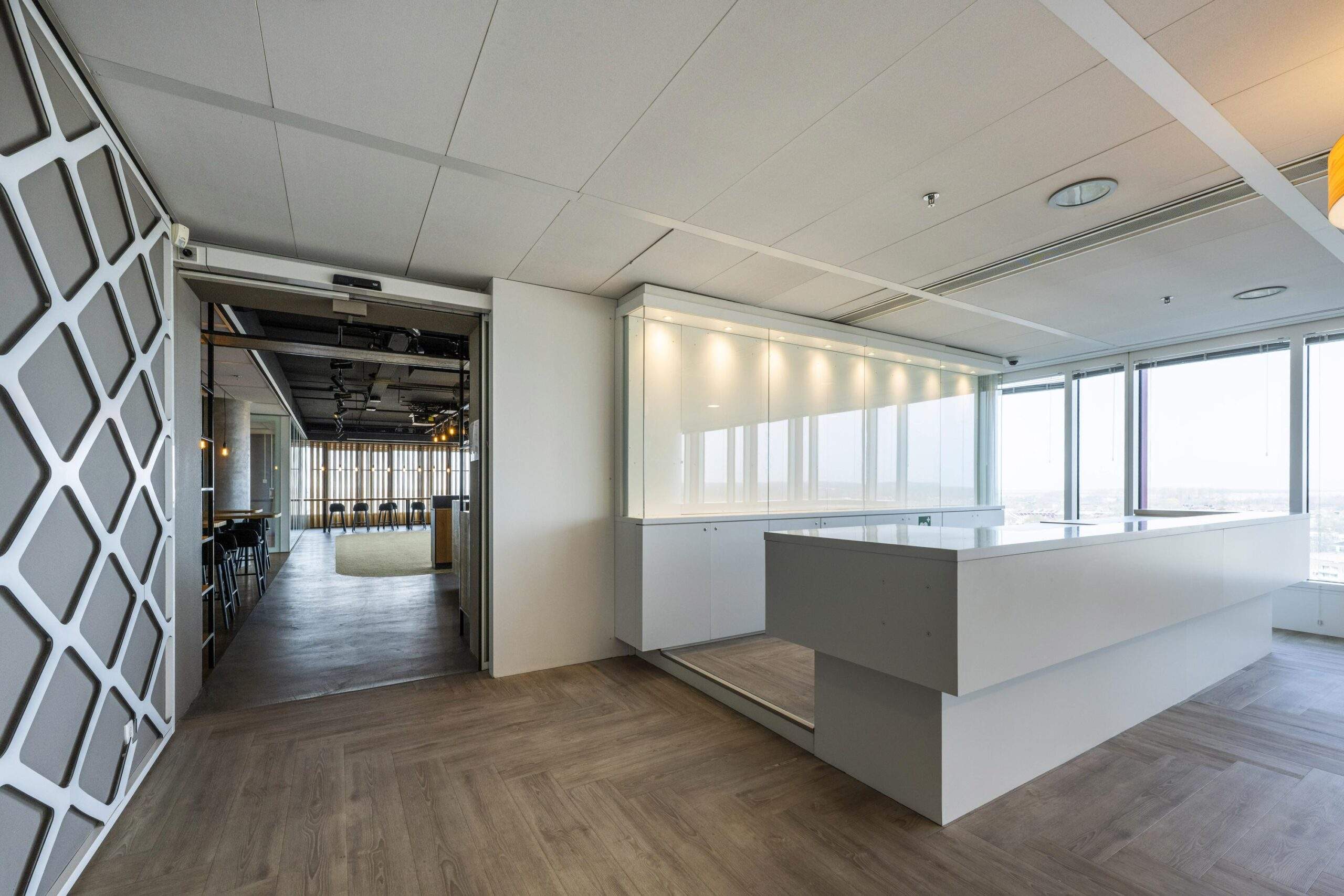 – Receptie, skybar en lounge met prachtig uitzicht over Almere en met vergezichten naar Amsterdam, IJsselmeer en het Gooi.