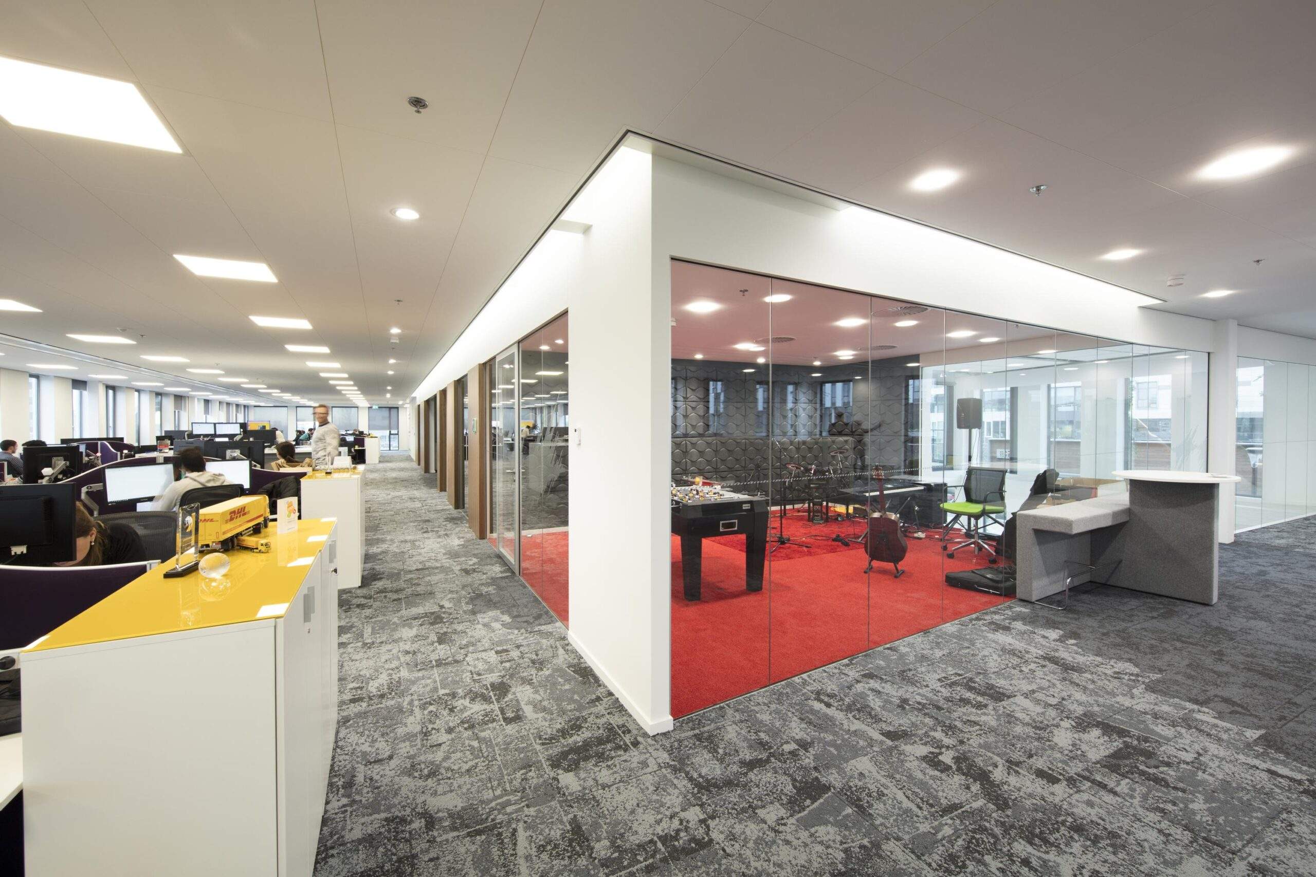 • Systeemplafond met LED-verlichtingsarmaturen;