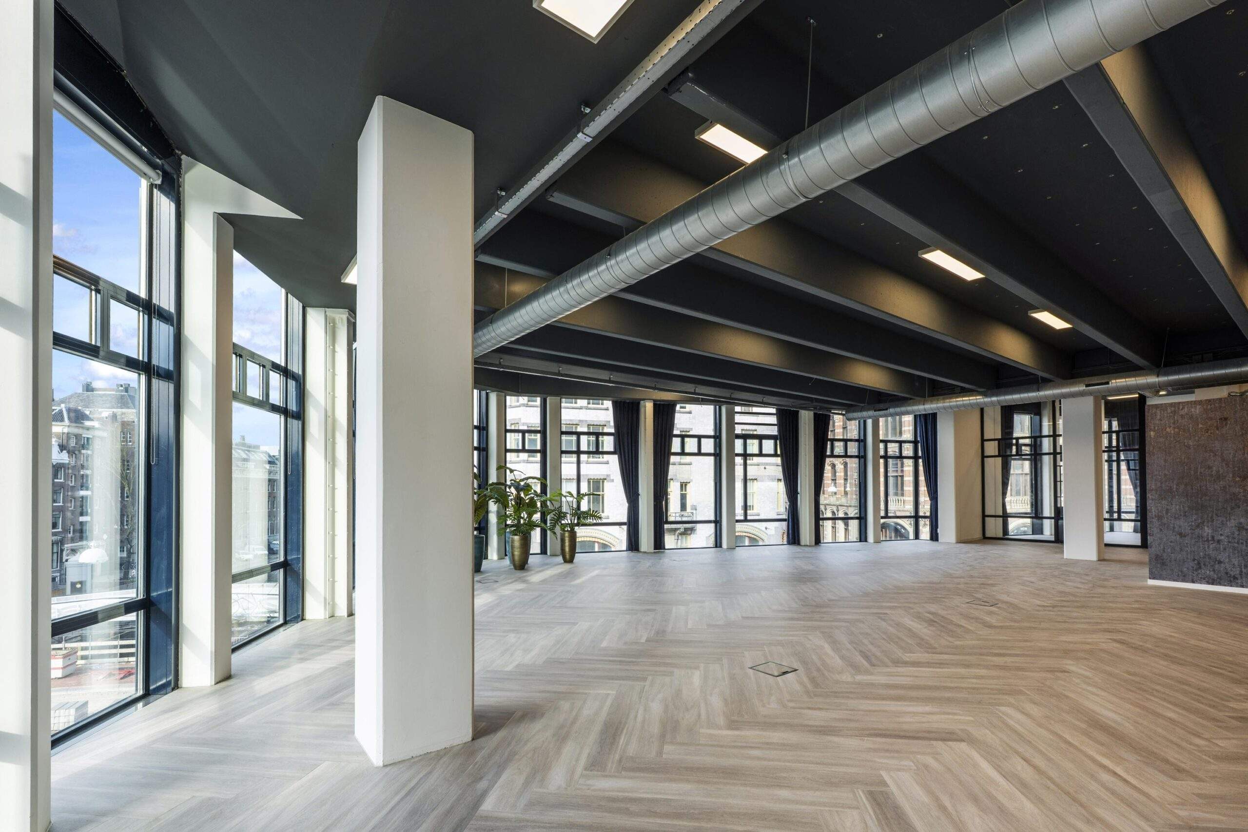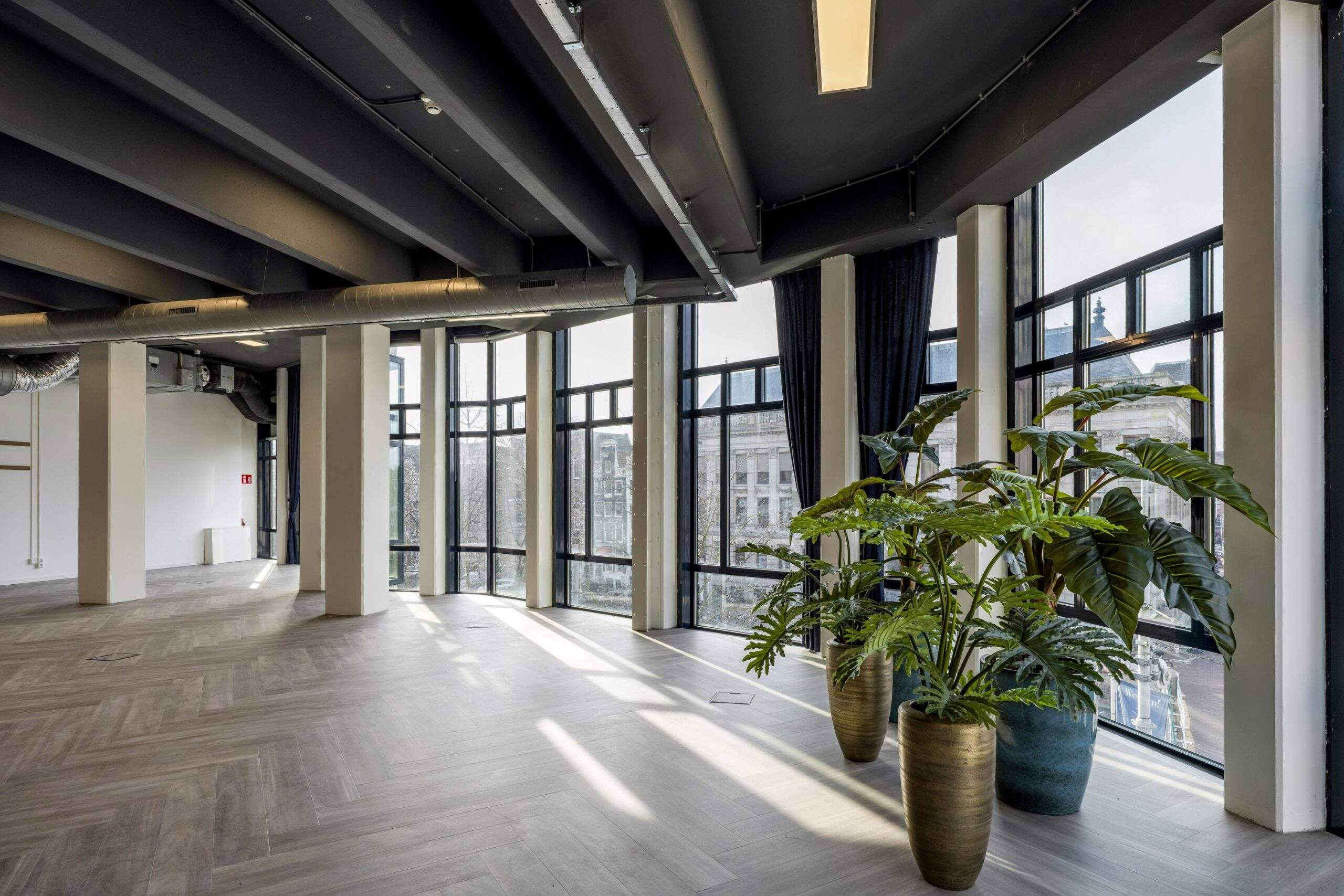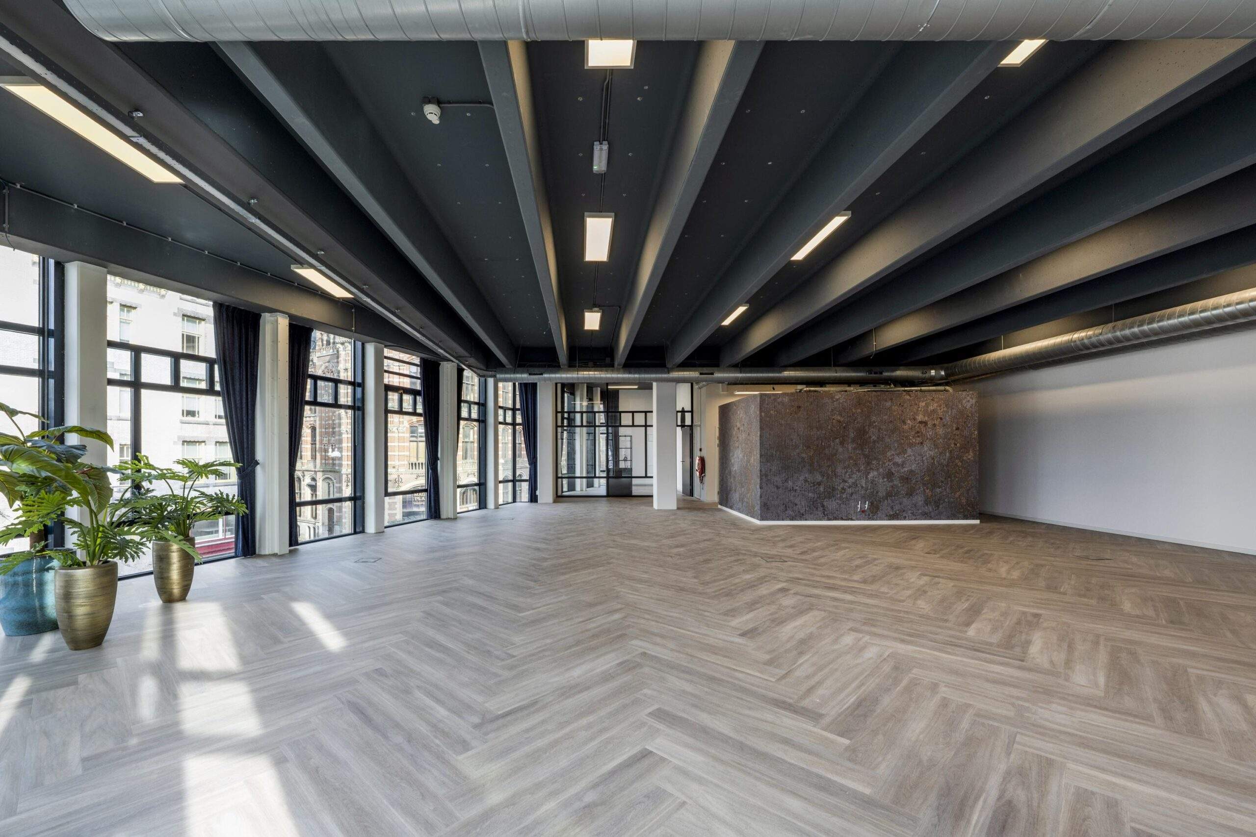 In het prestigieuze object “Maxwell House”, direct achter het Paleis op de Dam, tegenover Magna Plaza en naast het W Hotel, bieden wij hoogwaardige kantoorruimte aan. Dit representatieve hoekobject is gelegen op een absolute toplocatie aan de Singel, de Raadhuisstraat en de Spuistraat. Dankzij de grote raampartijen over de volledige hoogte beschikt de ruimte over een uitzonderlijke hoeveelheid daglicht en een prachtig, vrij uitzicht over de Amsterdamse binnenstad aan drie zijden. Het object is recent volledig gerenoveerd en afgewerkt op een hoogwaardig niveau, waarbij de sanitaire voorzieningen zijn uitgevoerd in natuursteen en marmer, en een moderne witte keuken is geplaatst in combinatie met marmeren accenten. De vloeren zijn voorzien van een stijlvolle visgraat PVC-afwerking, wat bijdraagt aan de representatieve uitstraling van het geheel.