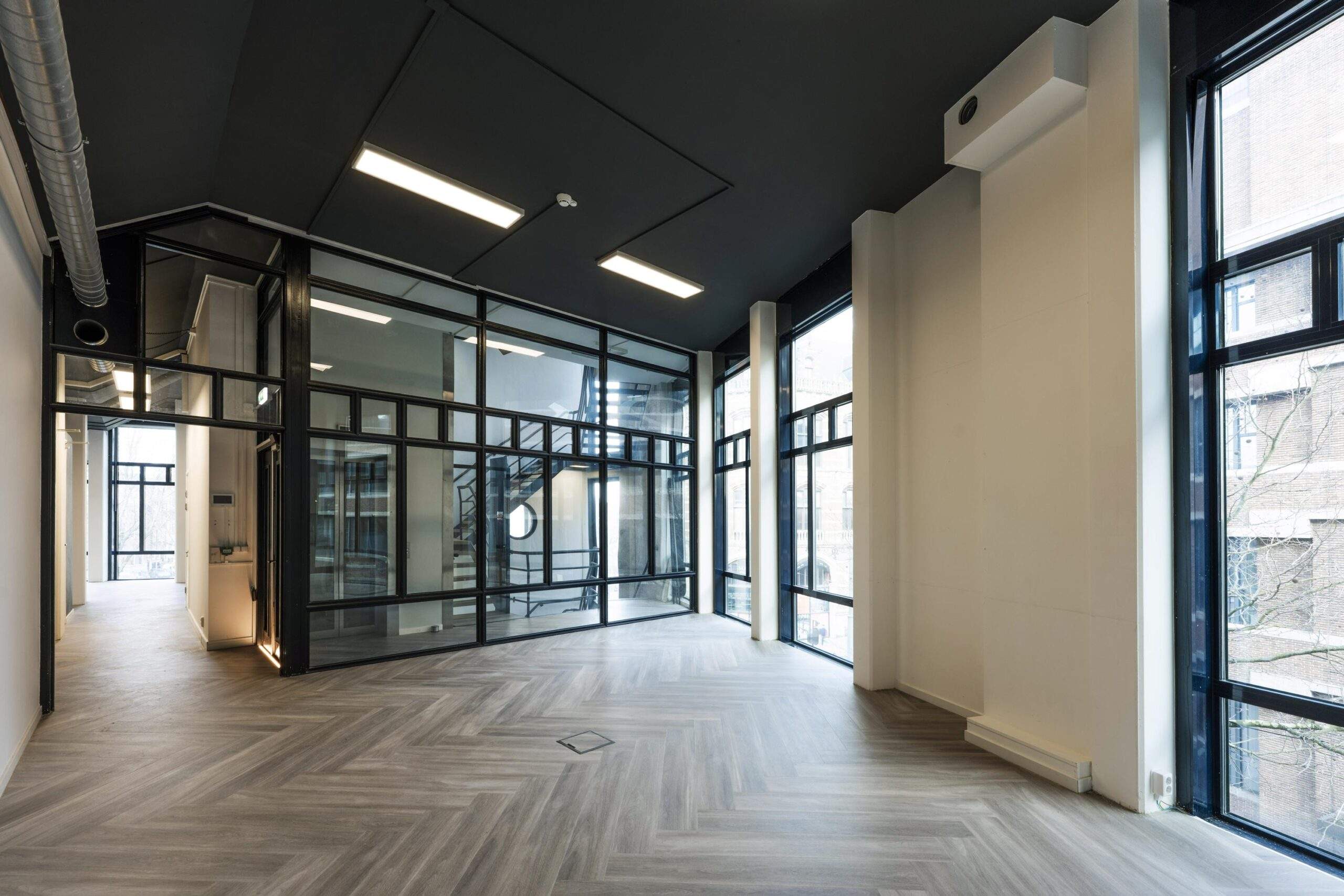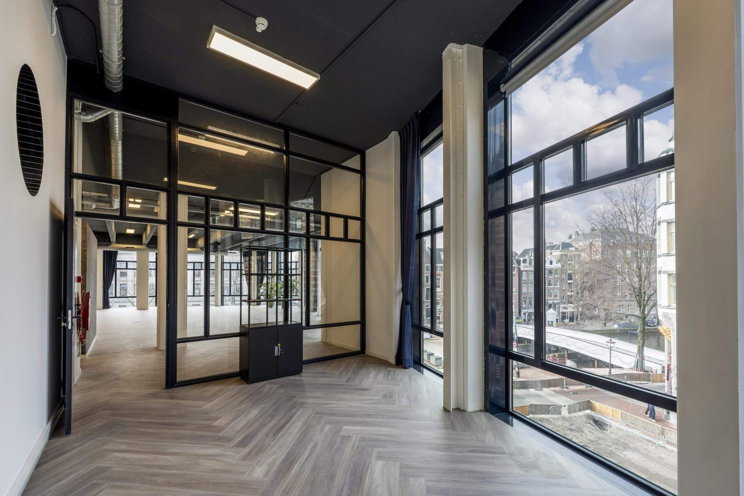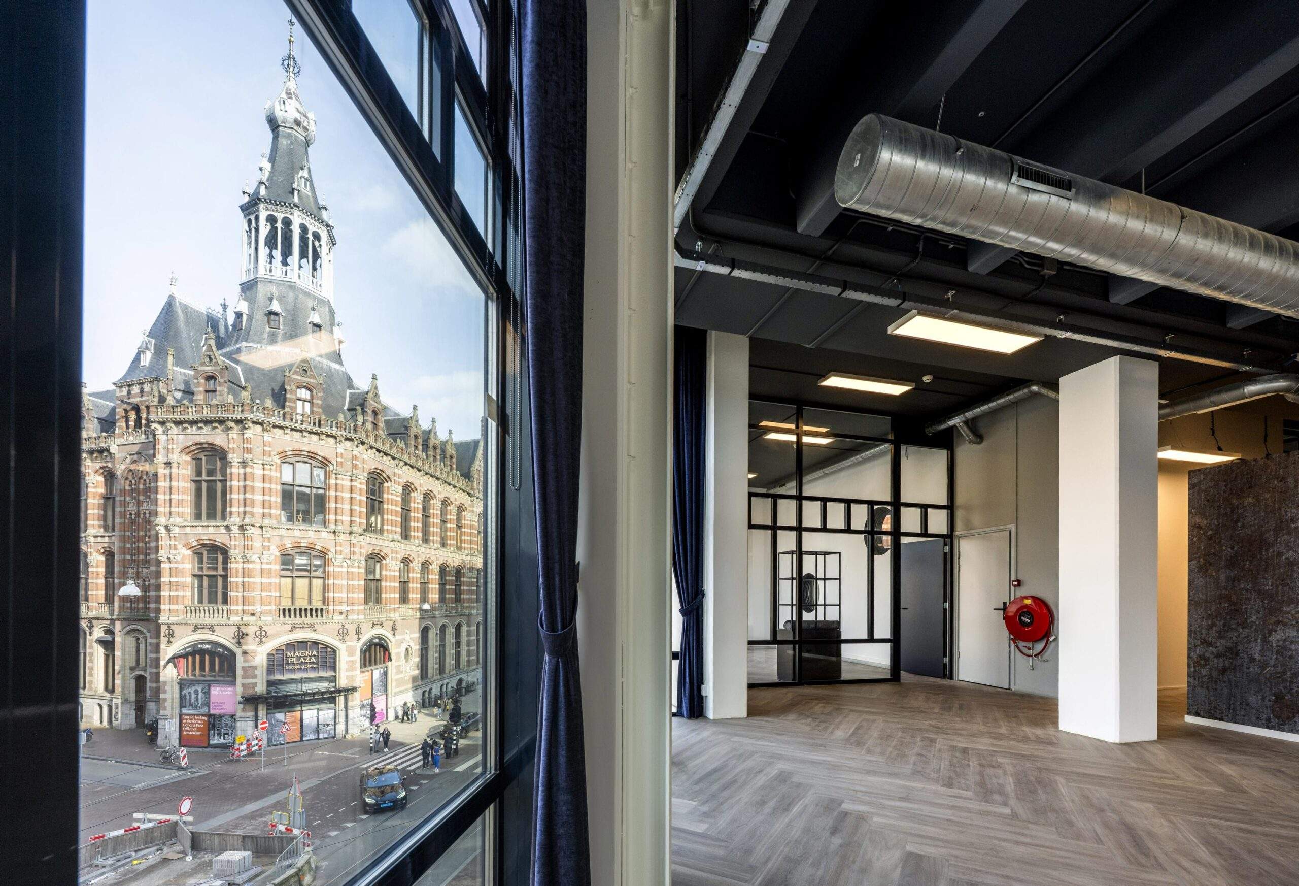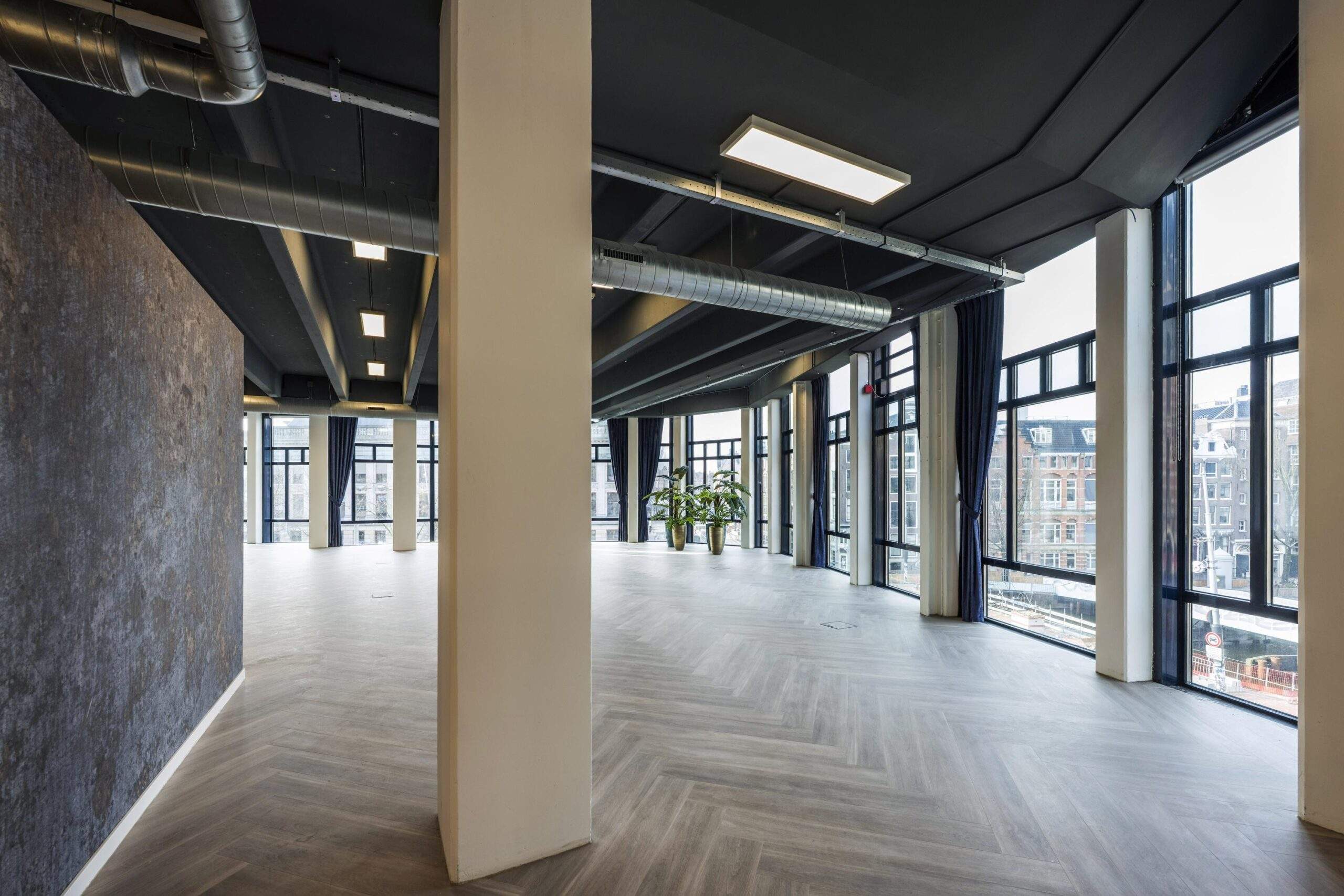 In het prestigieuze object “Maxwell House”, direct achter het Paleis op de Dam, tegenover Magna Plaza en naast het W Hotel, bieden wij hoogwaardige kantoorruimte aan. Dit representatieve hoekobject is gelegen op een absolute toplocatie aan de Singel, de Raadhuisstraat en de Spuistraat. Dankzij de grote raampartijen over de volledige hoogte beschikt de ruimte over een uitzonderlijke hoeveelheid daglicht en een prachtig, vrij uitzicht over de Amsterdamse binnenstad aan drie zijden. Het object is recent volledig gerenoveerd en afgewerkt op een hoogwaardig niveau, waarbij de sanitaire voorzieningen zijn uitgevoerd in natuursteen en marmer, en een moderne witte keuken is geplaatst in combinatie met marmeren accenten. De vloeren zijn voorzien van een stijlvolle visgraat PVC-afwerking, wat bijdraagt aan de representatieve uitstraling van het geheel.